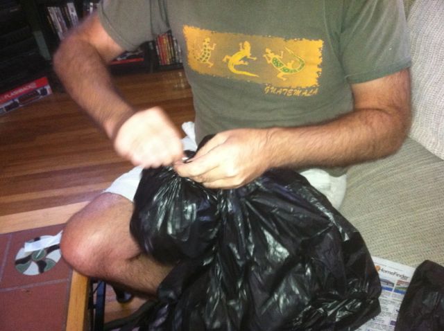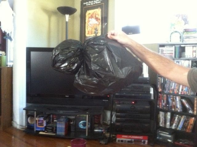 * Two (2) black trash bags (I buy the cheapo roll from the local grocery store)